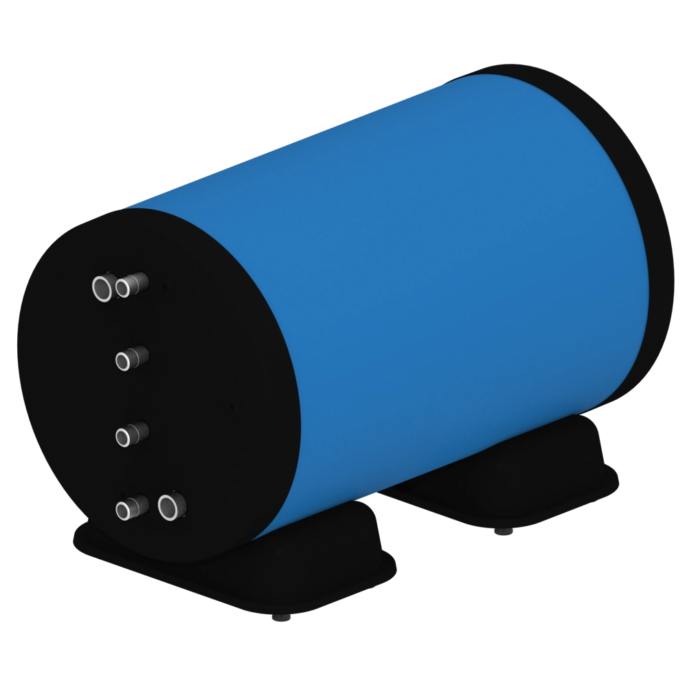 Mocht een liggende boiler de enige mogelijkheid zijn kan beter worden gekozen voor de Horizontal fresh-water storage tank 200 litres with 2 extra HXs met twee extra buiswisselaars (gezien de warmteoverdracht van warmtepomp naar het opslagvat)