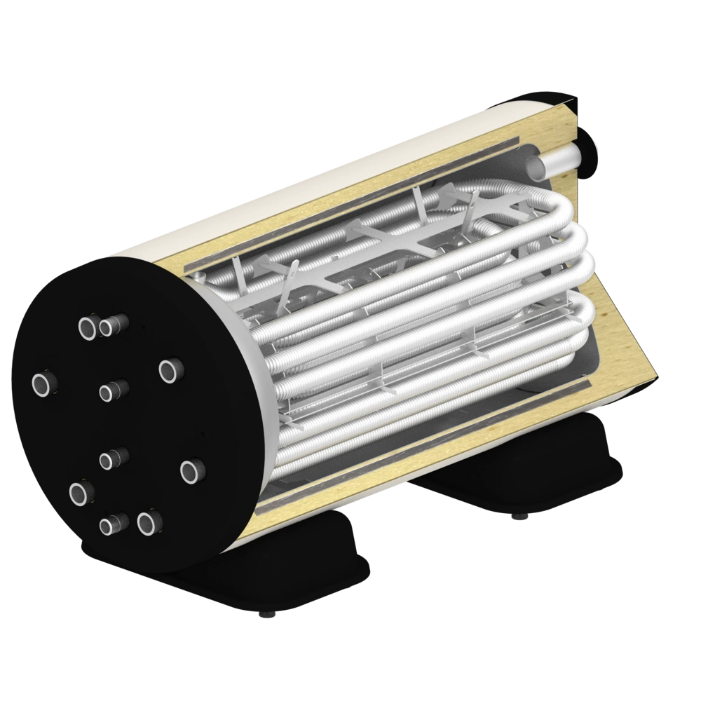 Compare! The horizontal arrangement of the heat exchangers in horizontal OEG fresh-water storage tanks offers your customers advantages over other products on the market. Efficient heat stratification is only achieved by installing the heat exchangers horizontally. The generously dimensioned heat exchanger surfaces provide another energy advantage over other products available on the market.