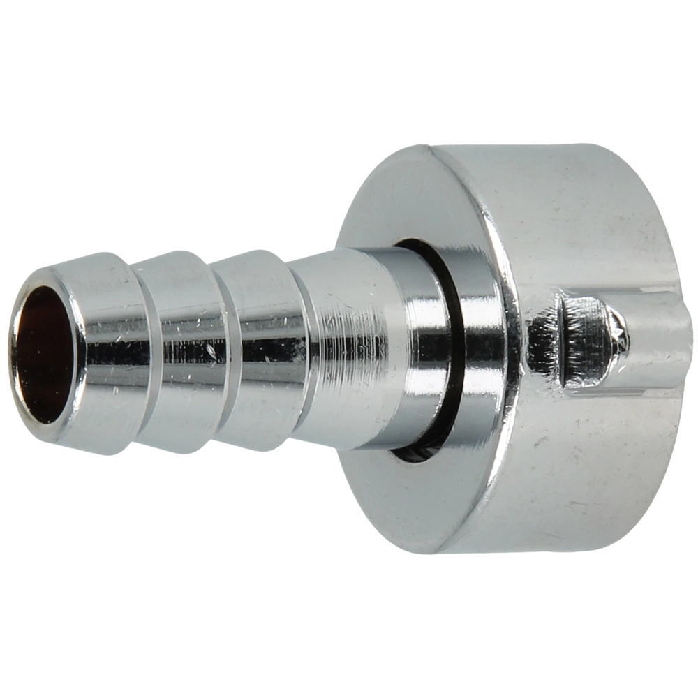 Flat-sealing hose screw connection made of chrome-plated brass with NBR sealing.
