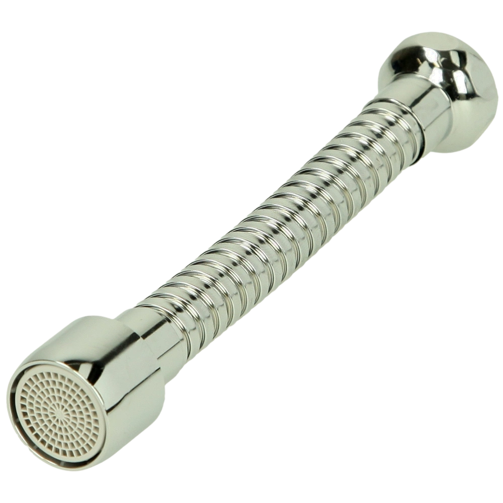 Extended, flexible spout made of chrome-plated metal with eco-aerator.