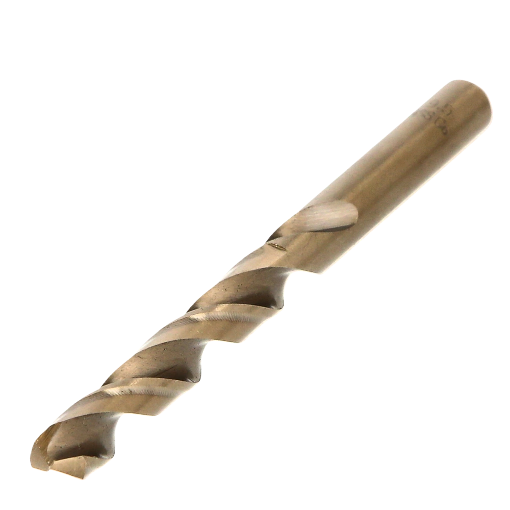 Fully ground HSS-Co twist drill bit with 5% cobalt contents for drilling into stainless steel, brass, copper and plastic. The point angle of 135° and the split point allow for precise self-centring, a pinpoint pilot drill behaviour as well as high cutting speeds with low heat development when drilling into hard subsurfaces.