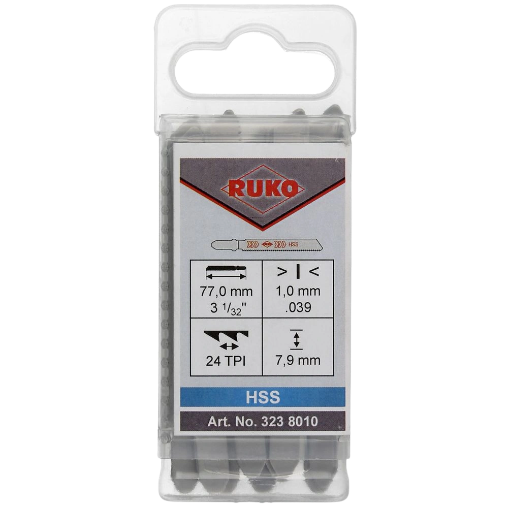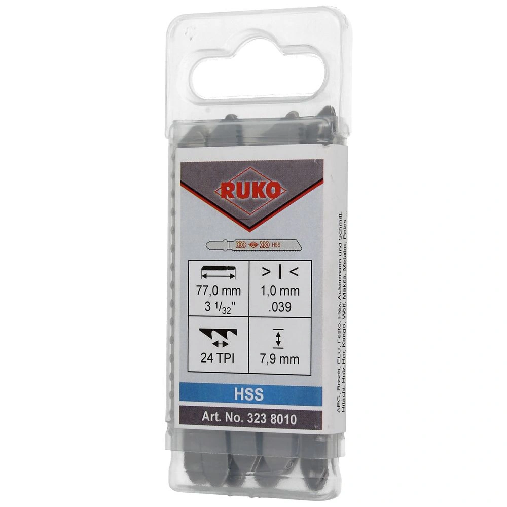 All product informationThe jigsaw blades are suitable for the use in steel, non-ferrous metal and aluminium of up to 4.0 mm. They can also be used for non-corrosive steel sheet and glass-fibre reinforced plastics of up to 2.0 mm. The steel sheet has to be cooled by cutting oil during processing. Hard and soft wood as well as insulation material up to 8.0 mm and acrylic glass, pressed material, hard tissue and perspex can also be cut with the blade. The blade is suitable for curved cuts.