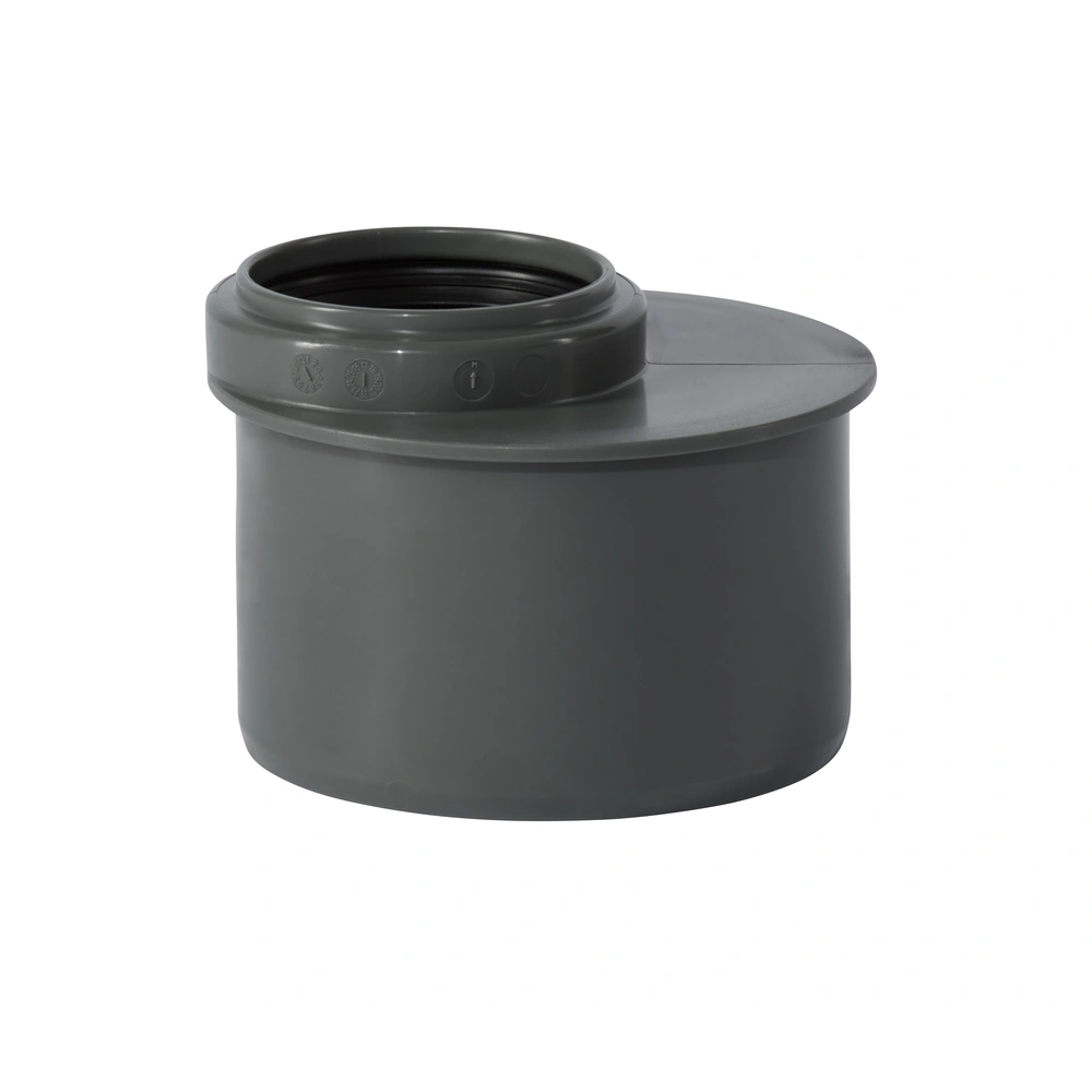 Ultra-short HT reducer made of flame-retardant polypropylene with plug-in socket on one end and 3-lip seal for wastewater pipes within the building structure according to DIN EN 1451.