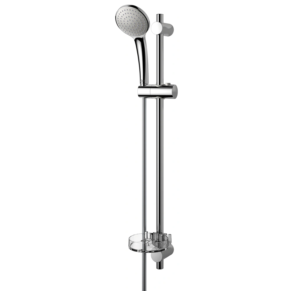 All product information Scope of deliveryShower combination consisting of a hand spray with anti-limescale function, a shower rail with swivelling pressbutton slider, a transparent soap dish and a shower hose.