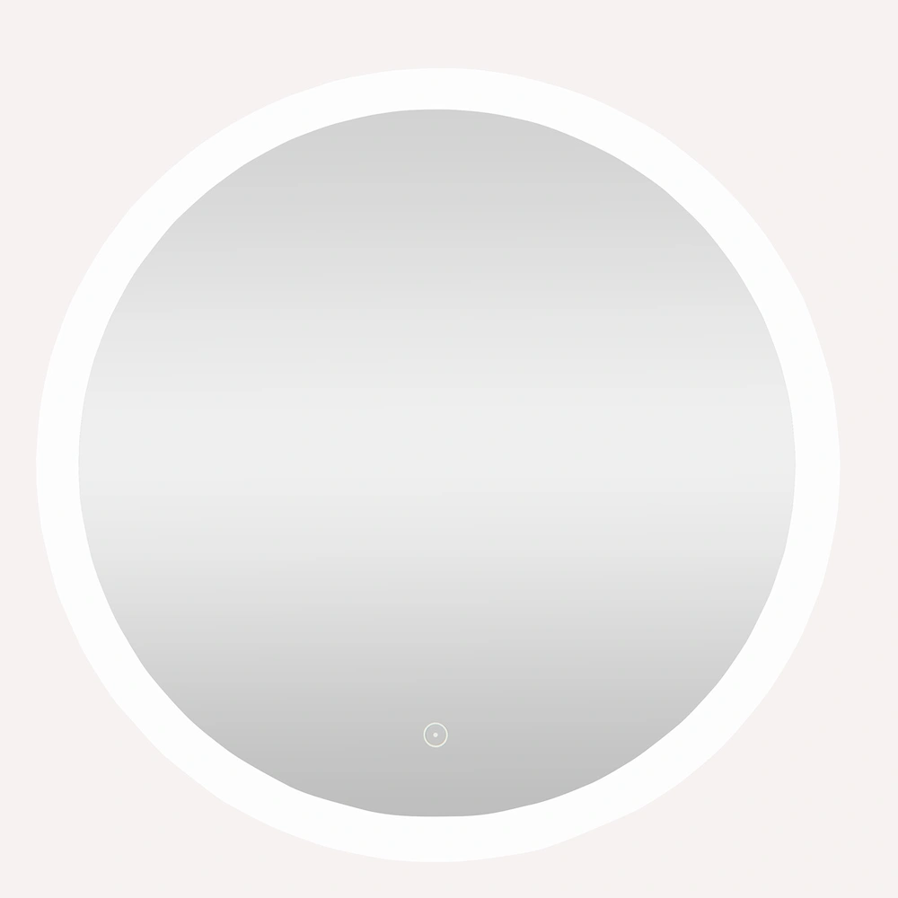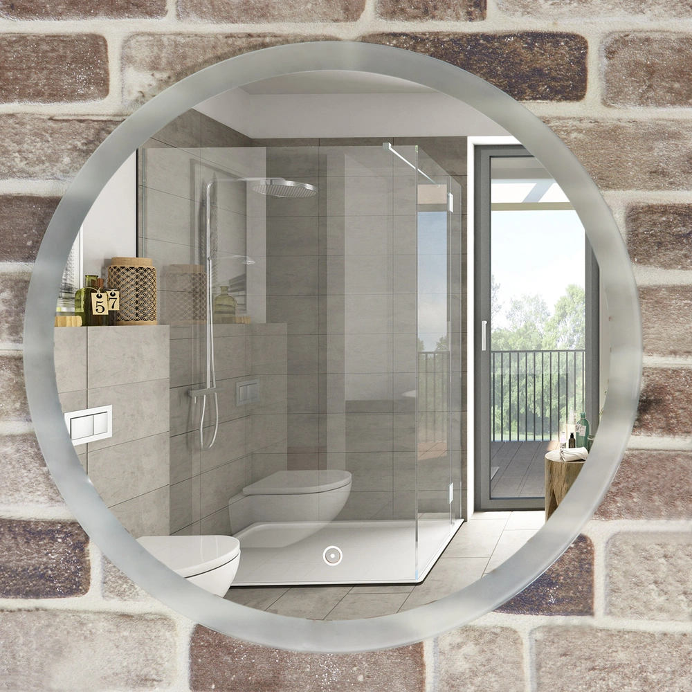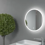 High-quality illuminated LED mirror with satin-finished rim. The mirror can be switched on and off or dimmed via a touch symbol.
