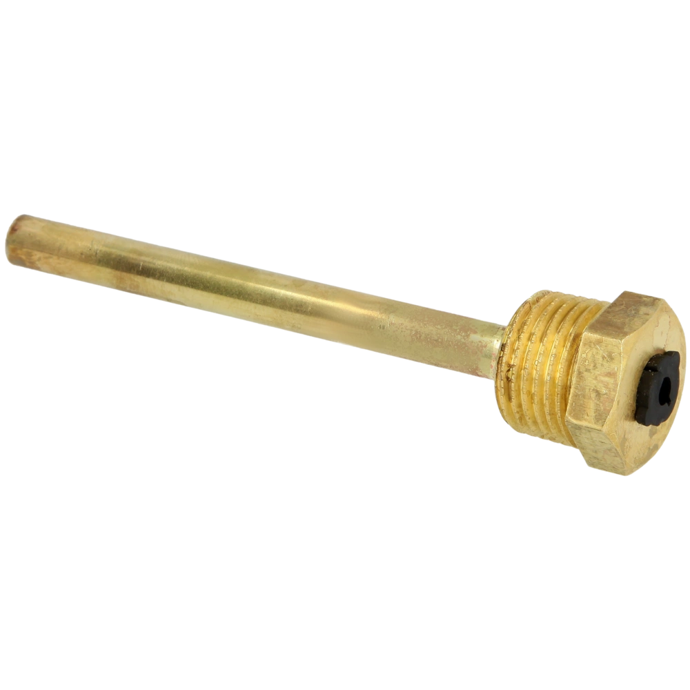 The immersion sleeve is a thin-walled pipe made of a brass pipe thread on one side and a copper sleeve.