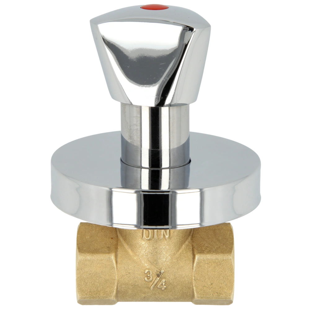 In-wall valve with changeable colour marking red/blue for hot and cold water and push rosette.