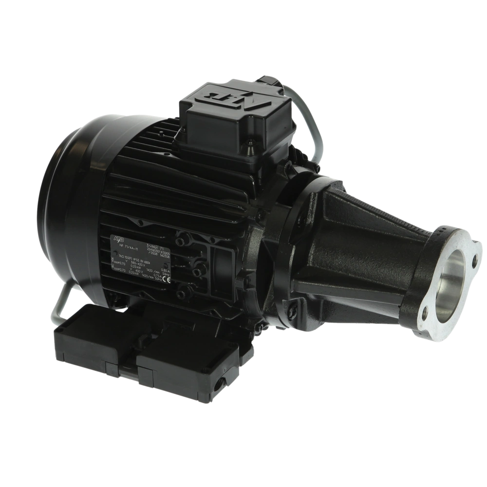 Industrial motor with pump flange and coupling for SAFAG pumps with 3/8" and 1/2" connections.