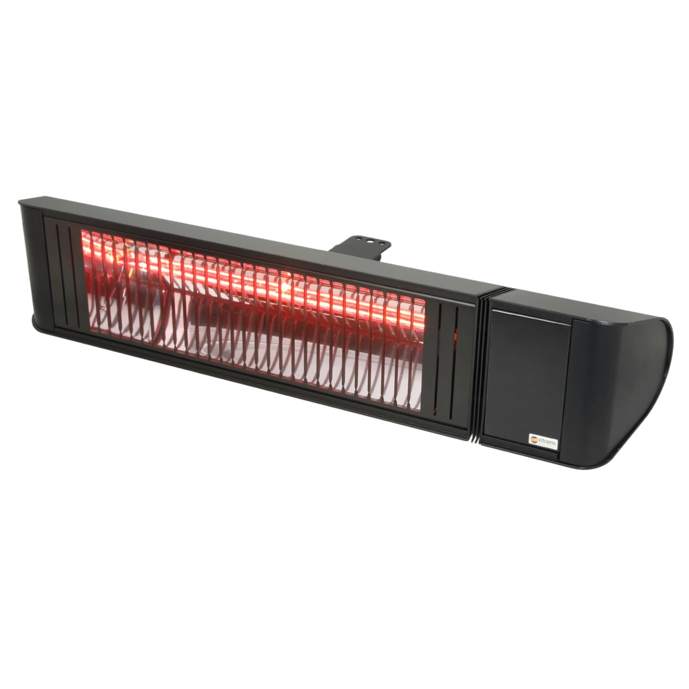 Infrared heater with visibly glowing heating medium as ideal heat source where quick and direct heat in the outdoor area is needed. Cosy warmth within a few minutes on the terrace, balcony, patio and loggia. The coated halogen tube is regulated in 6 steps via remote control or continuously via Bluetooth app. Up to 6 devices can be controlled at the same time via App and remote control.
