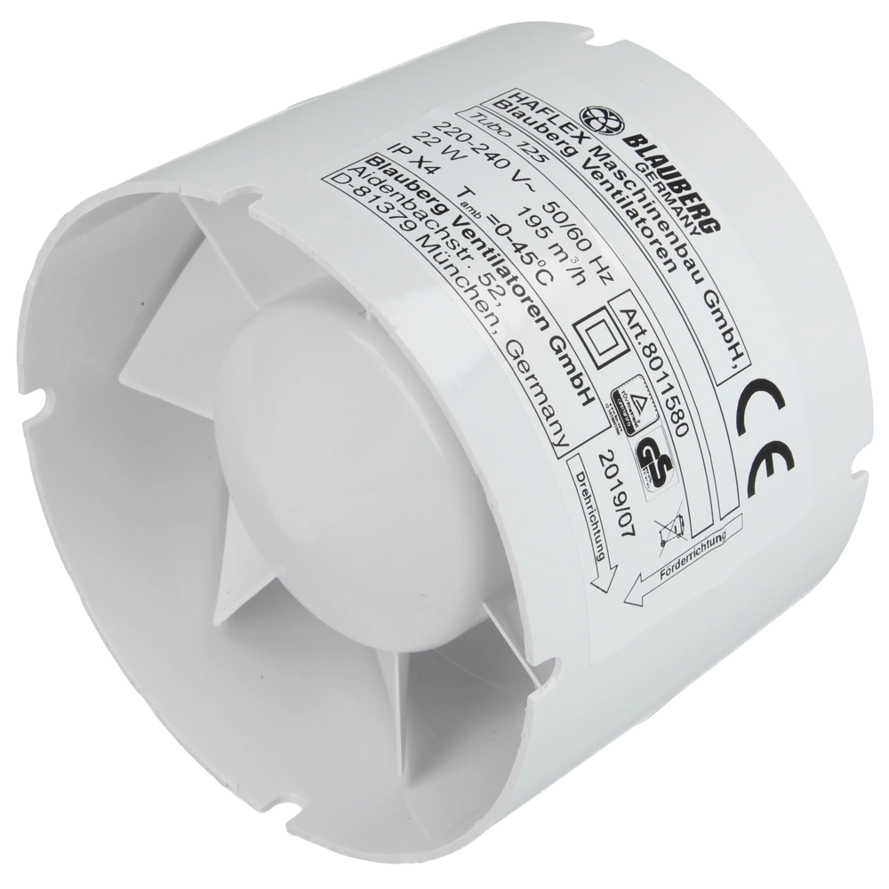 All product informationInline fan for supply and extract ventilation of bathroom, WC and other rooms. It is simply inserted into a round duct. The air direction is marked by an arrow - depending on the direction of insertion, supply or extract ventilation is achieved. The fan can be inserted in horizontal or vertical ducts.