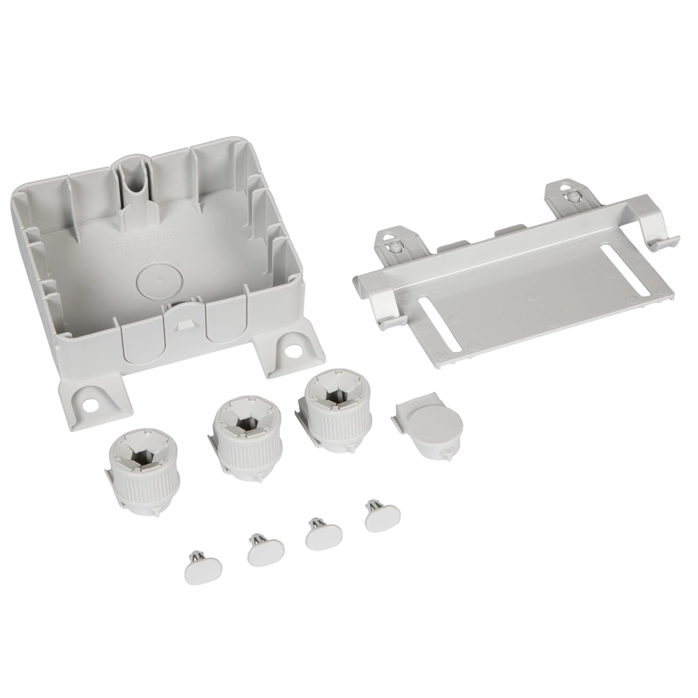 All product information Scope of deliveryJunction box with straight mounting bracket for cable support systems. The modular junction box is simply plugged onto the cable support system and fixated by pins. The box can be used either with a cover as classic junction box or with socket front part as socket junction box.