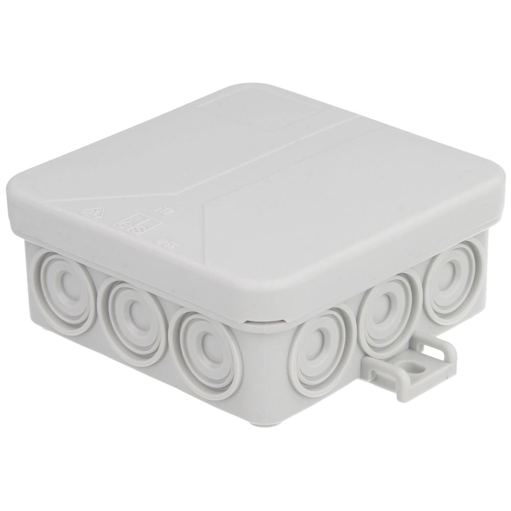 The junction box tested according to DIN EN 60670 (VDE 0606) has 12 pre-punched side entries and 3 floor entries can be drilled open additionally. The fixing lugs are positioned externally.