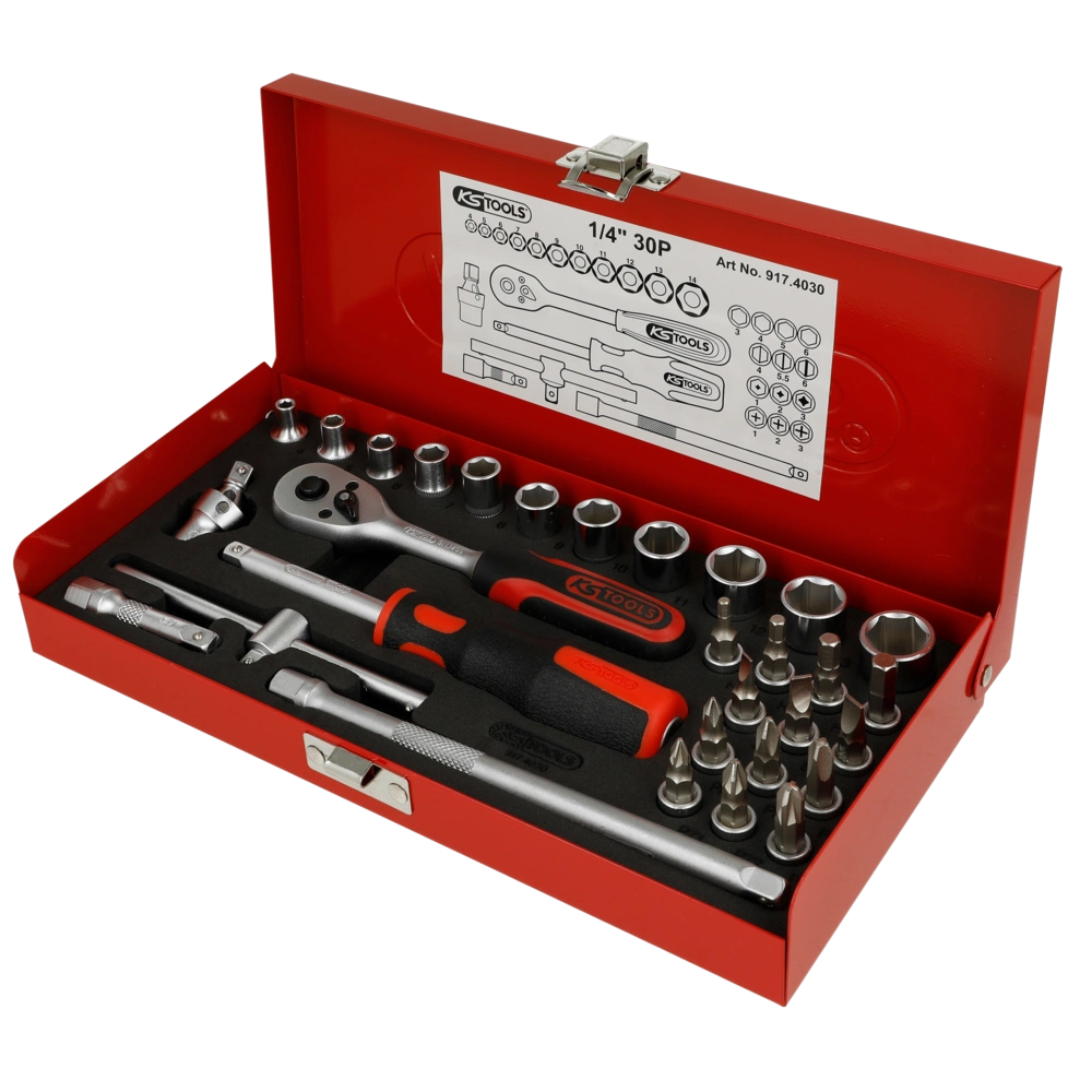 The 30-piece socket set is made of high-quality, matt chrome vanadium steel and will be delivered in a robust case.