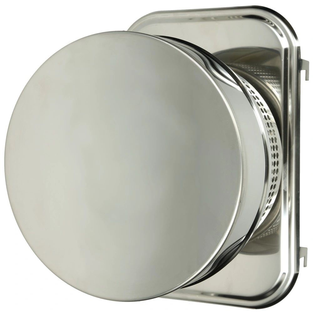 Draught limiter made of high-grade stainless steel for installation on Upland inspection doors outside the building on negative-pressure chimneys.
