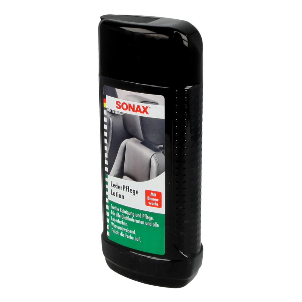 All product informationCleaning and caring lotion for all smooth and imitation leather like e.g. in car interiors, for motorbike clothes, bags, furniture, etc.. It is suitable for all leather colours. Effortlessly removes dirt, oil, grease and restores colours. Beeswax and silicone oils make the leather supple and protect it. After the treatment the leather retains its original grip and does not get slippery.