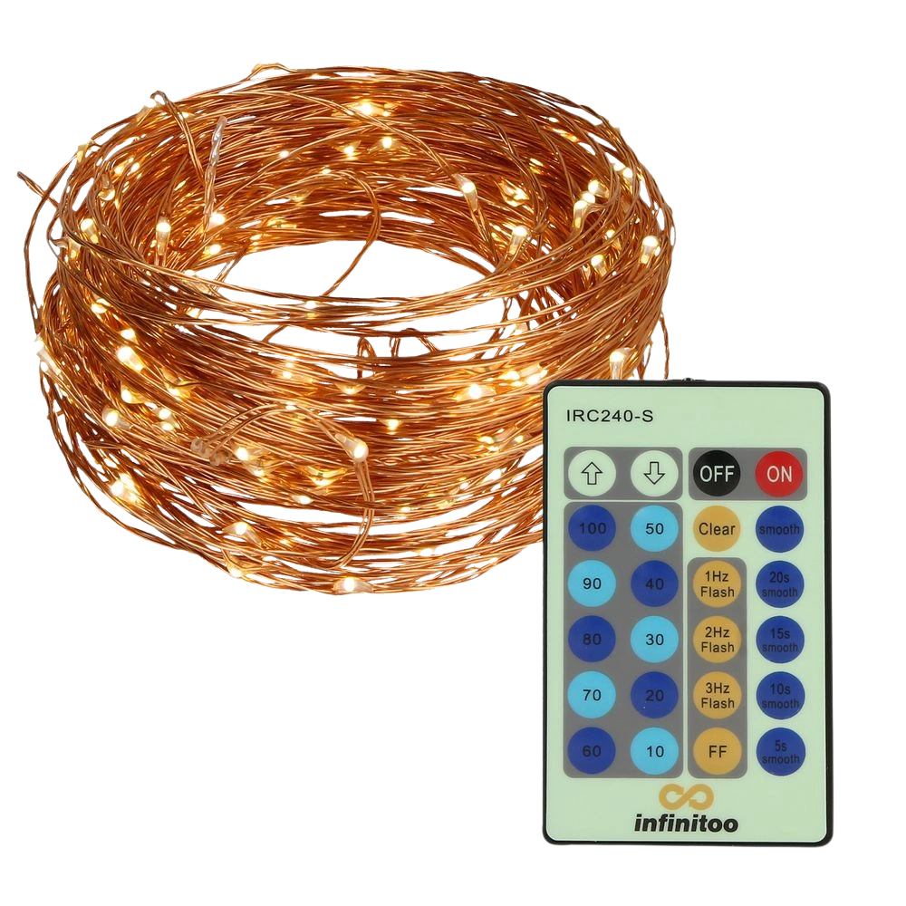 The LED light chain provides you with 200 bright lights on a 20-metre copper wire. The chain is perfect for Christmas, weddings or for decoration purposes in the living area. The brightness can be adjusted in 10 different steps thanks to the remote control provided. Additionally, different colour modes can be selected.