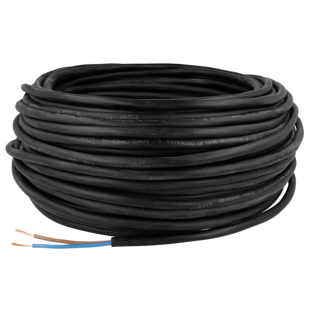 Rubber-sheathed cable for the connection of electric devices subject to low levels of mechanical stress in households, office rooms and workshops, in furniture, decorative covering, movable walls and cavities of prefabricated building components.
