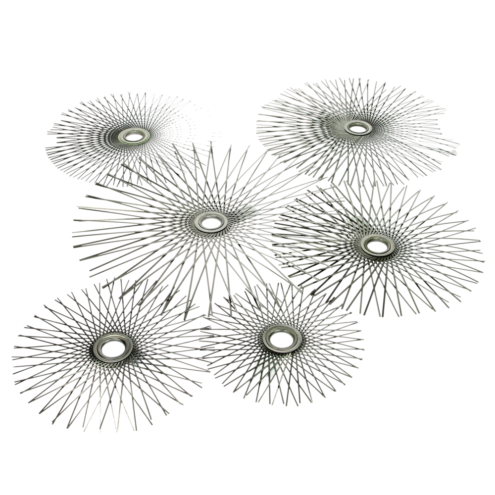 Line star set with spring-steel brushes for cleaning flue gas systems and ventilation ducts.