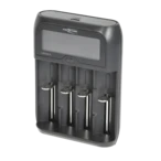 Quick charger with display for NiHm batteries, li-ion cells or LiFePO4 batteries via a USB-C charging cable. A wide range of battery sizes can be charged. The device has single-slot and temperature monitoring...