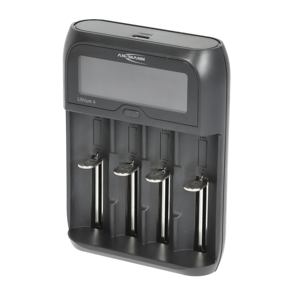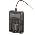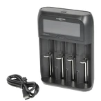 Quick charger with display for NiHm batteries, li-ion cells or LiFePO4 batteries via a USB-C charging cable. A wide range of battery sizes can be charged. The device has single-slot and temperature monitoring. The charging status is displayed, and the charging process ends automatically. For NiMH cells, a gentle trickle charging is carried out after the charging process.