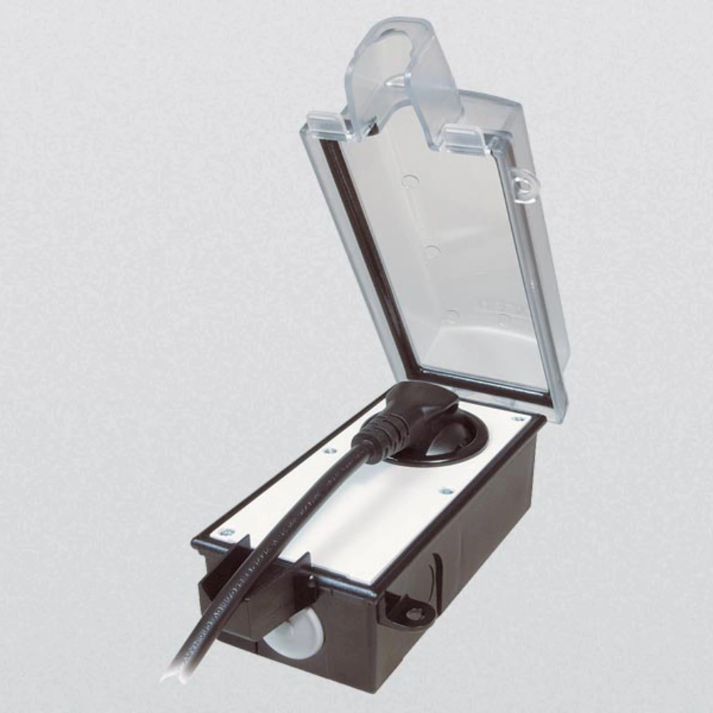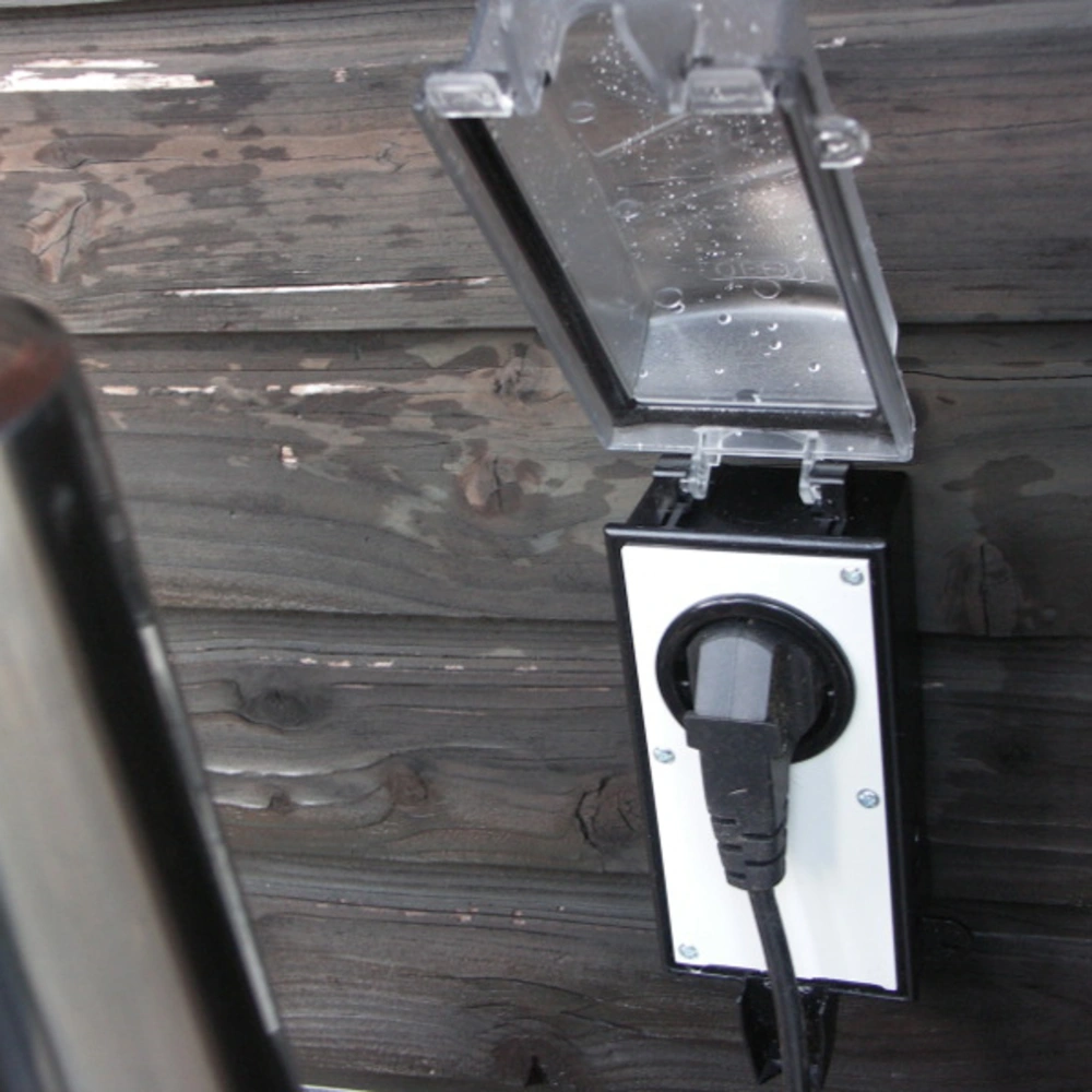 All product informationLockable outdoor socket outlet with enhanced contact protection, suitable for use in the garden, cellar or garage. The socket outlet for angled plugs is intended for wall mounting only and features a transparent impact-resistant plastic cover with all-round seal and a tab for a padlock to prevent unauthorised power extraction.