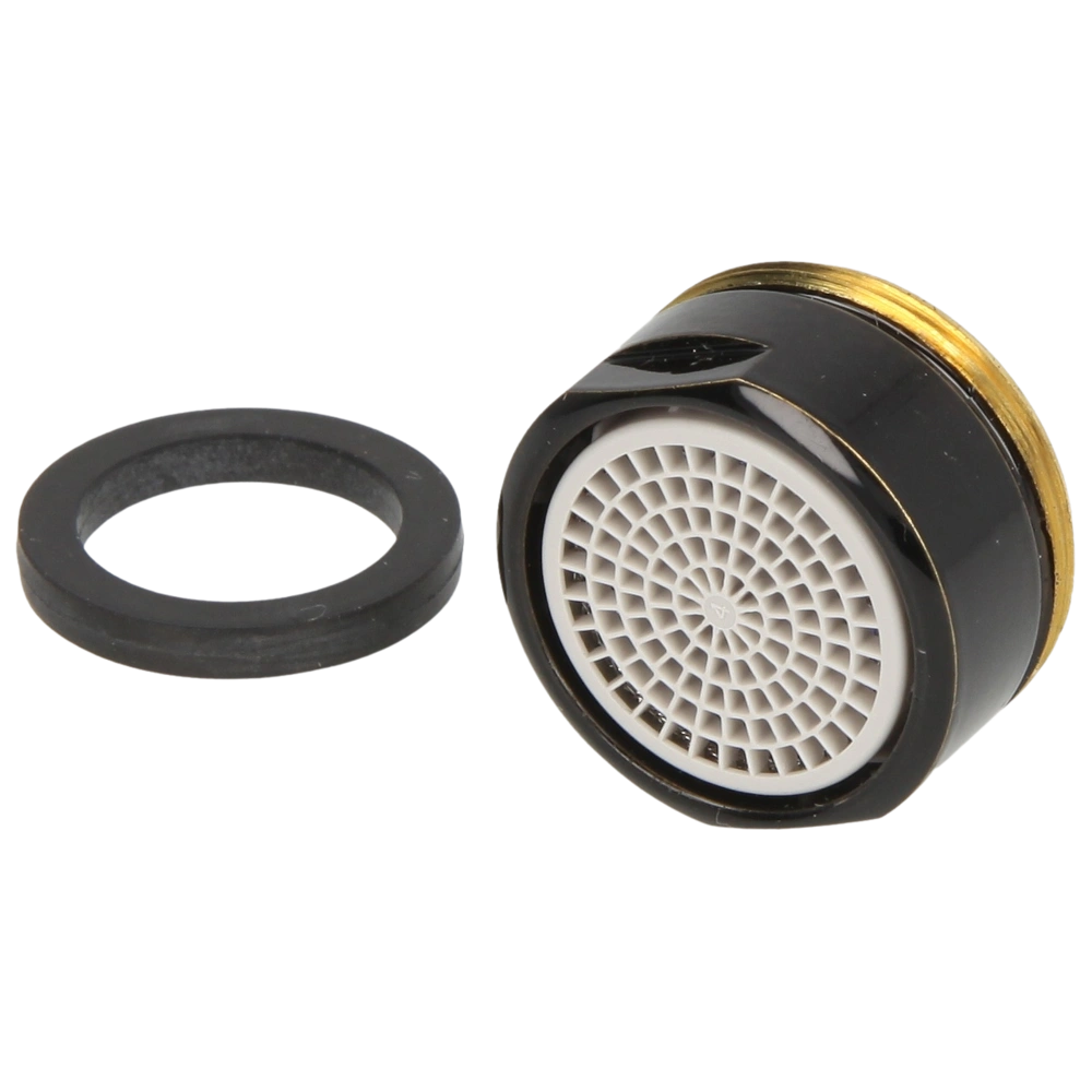 Flow controller with strainer and anti-scale sieve. The aeration creates a pleasantly soft and splash-free comfort stream.