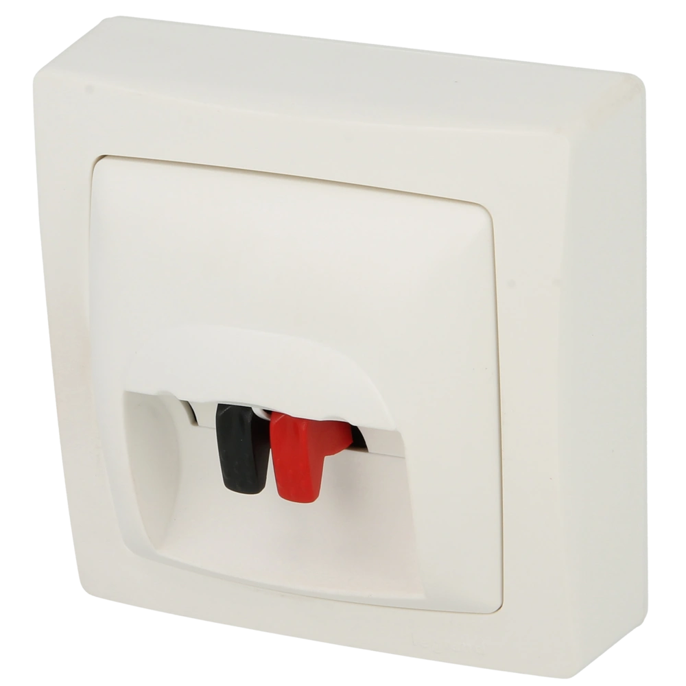 Connection socket with screwless connection terminals for loudspeakers.