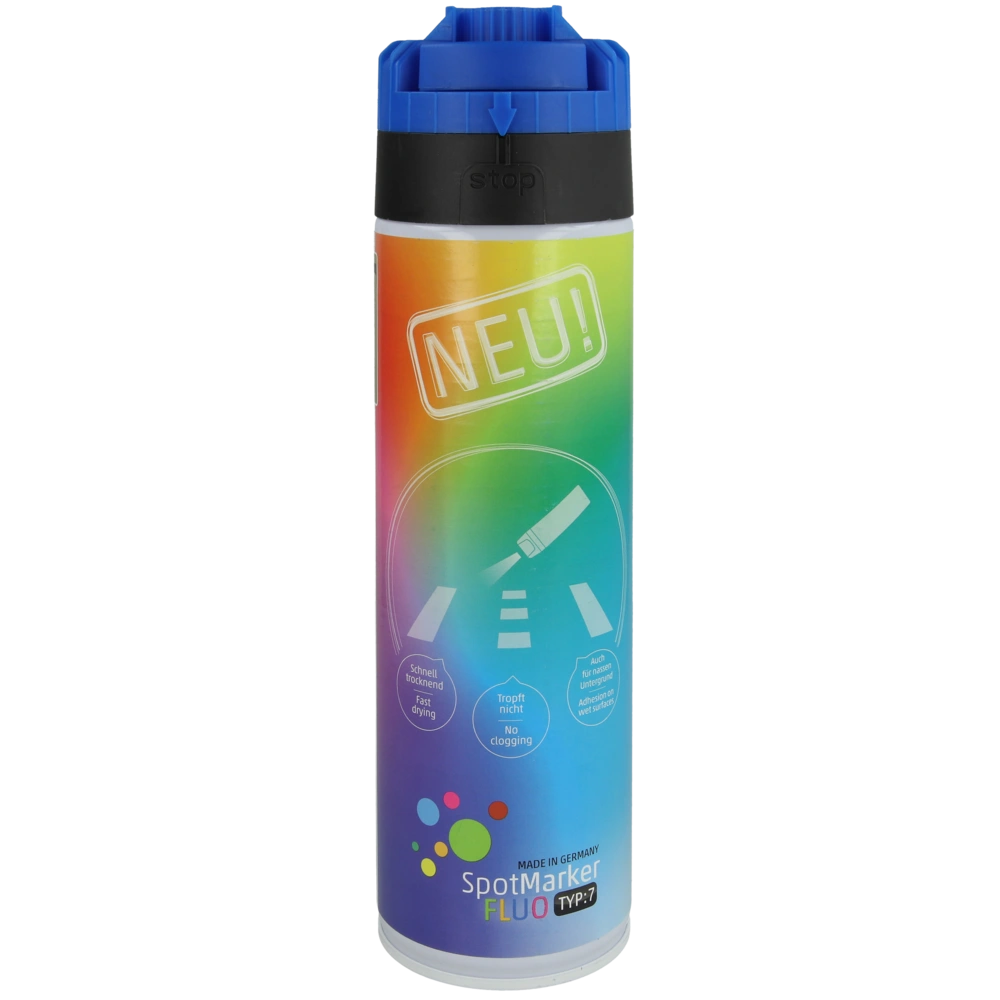 Marking spray with high luminosity for signs and for markings during road works, on buildings, constructions, wooden blocks and many more. It is fast-drying even on wet surfaces and resistant to UV radiation or bad weather conditions.