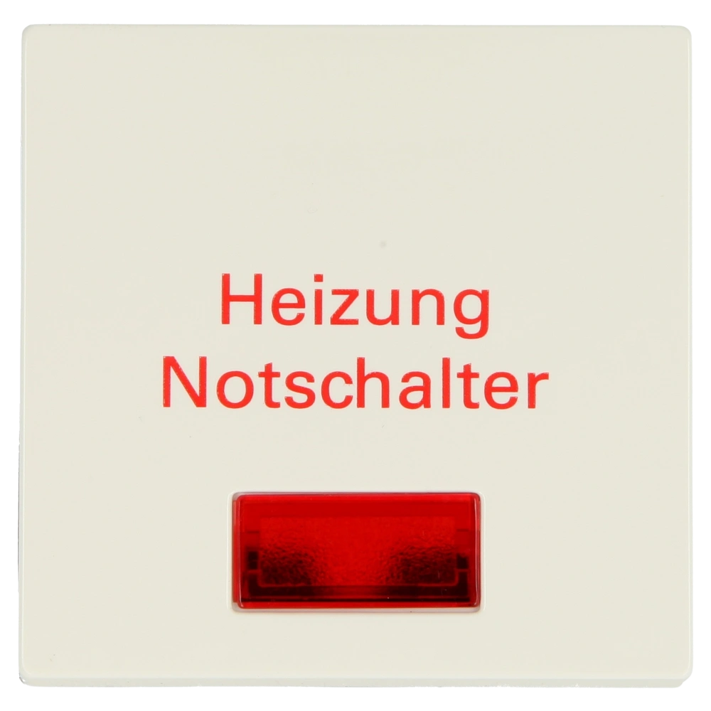 All product informationEinzelwippe mit Aufdruck "Heizung Notschalter" und roter Kontrollleuchte als Abdeckung für Kontrollschalter und -taster.