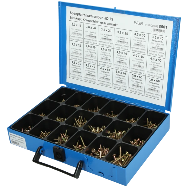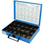 Assortment case for order and overview of small parts such as screws, bolts and washers. Thanks to the sturdy design with carrying handle, the metal sheet cases are suitable for safe transport and quick removal when being on the way.