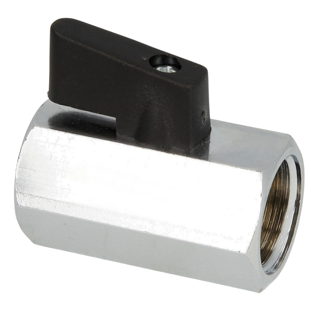 Mini hex ball valve for water supply, heating and air-conditioning systems. The lever is made of plastic.
