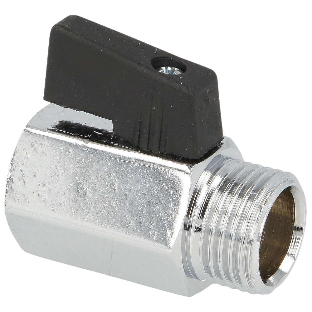 Mini hex ball valve for water supply, heating and air-conditioning systems. The lever is made of plastic.