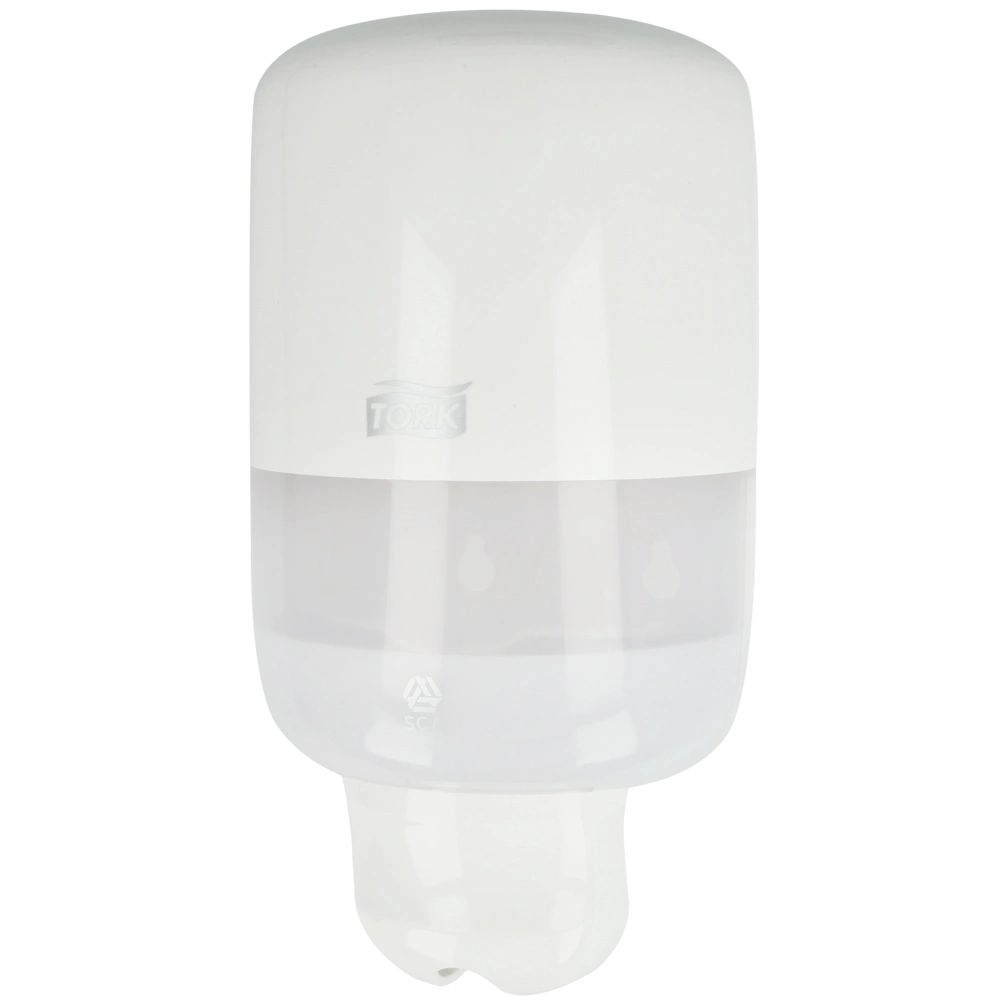 All product informationDispenser made of shock-resistant plastic for liquid soap in sealed flacons with a contents of 475 ml. The space-saving soap dispenser is equipped with an inspection window, it is also lockable, very user-friendly and does not drip. Installation with included mounting material or drill-free with the attached adhesive strips.
