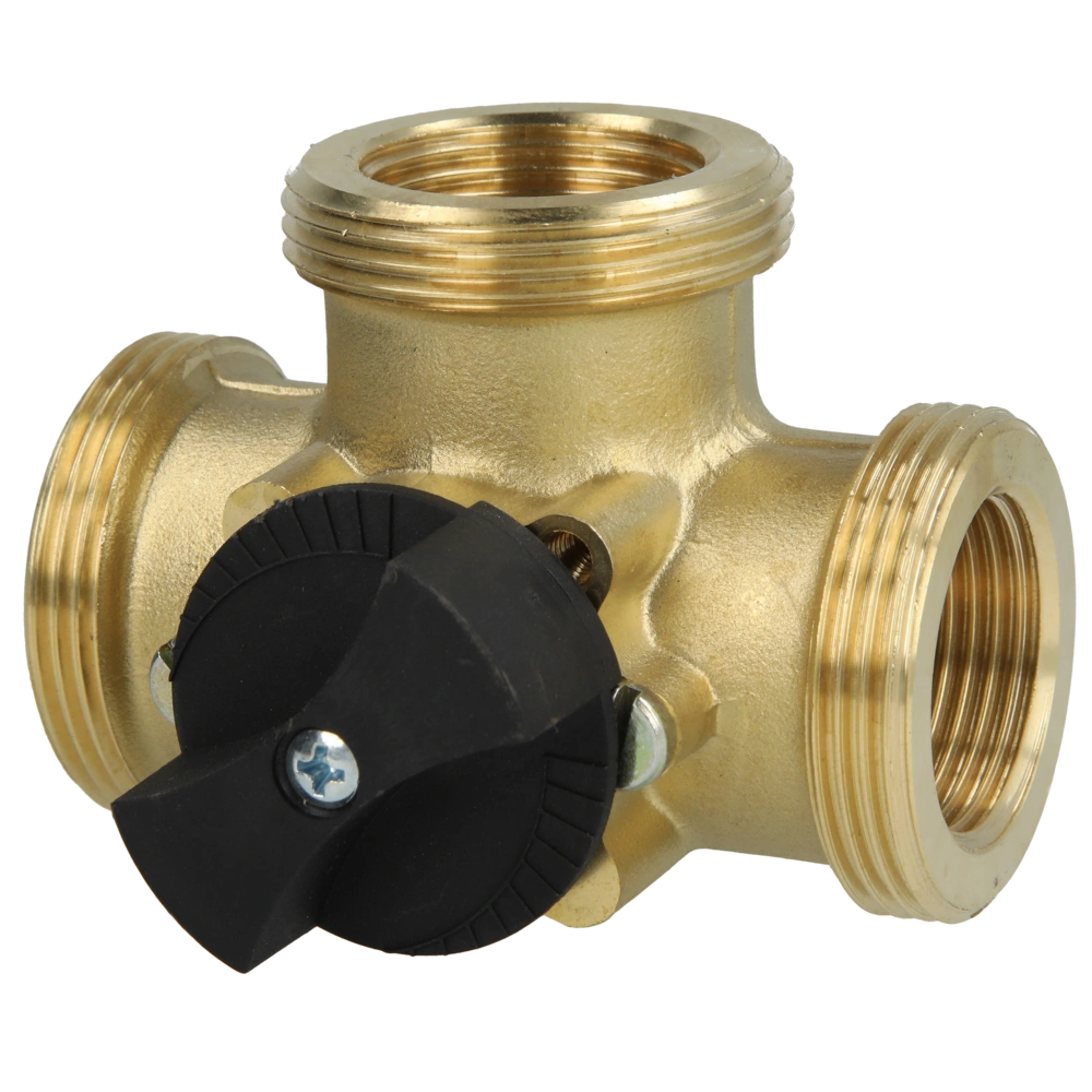 The 3-way mixing valve is suitable for mixed or zone operation. The valves are made of high-quality brass and can be used in heating and cooling applications. For manual operation, the mixing valve is equipped with a non-slip button.