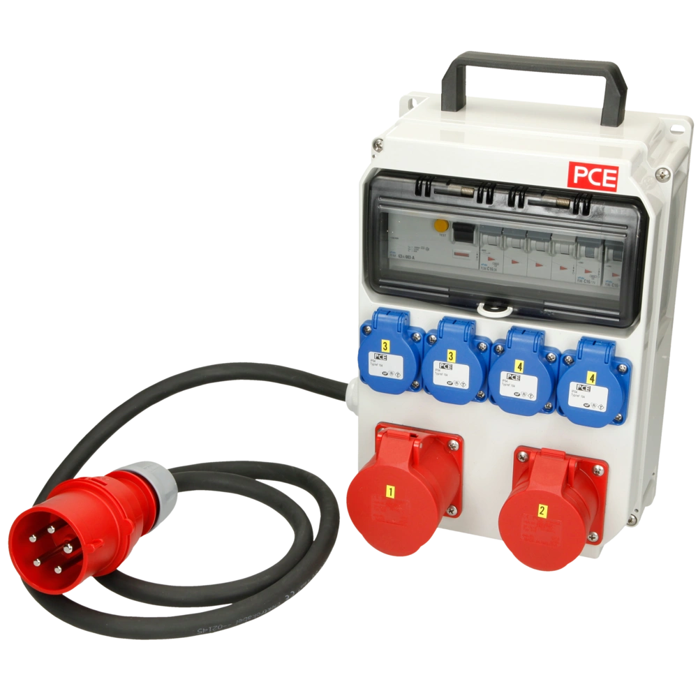 Mobile and robust distribution box in compact design for construction site and workshop. The circuit breakers are ready-wired for connection.