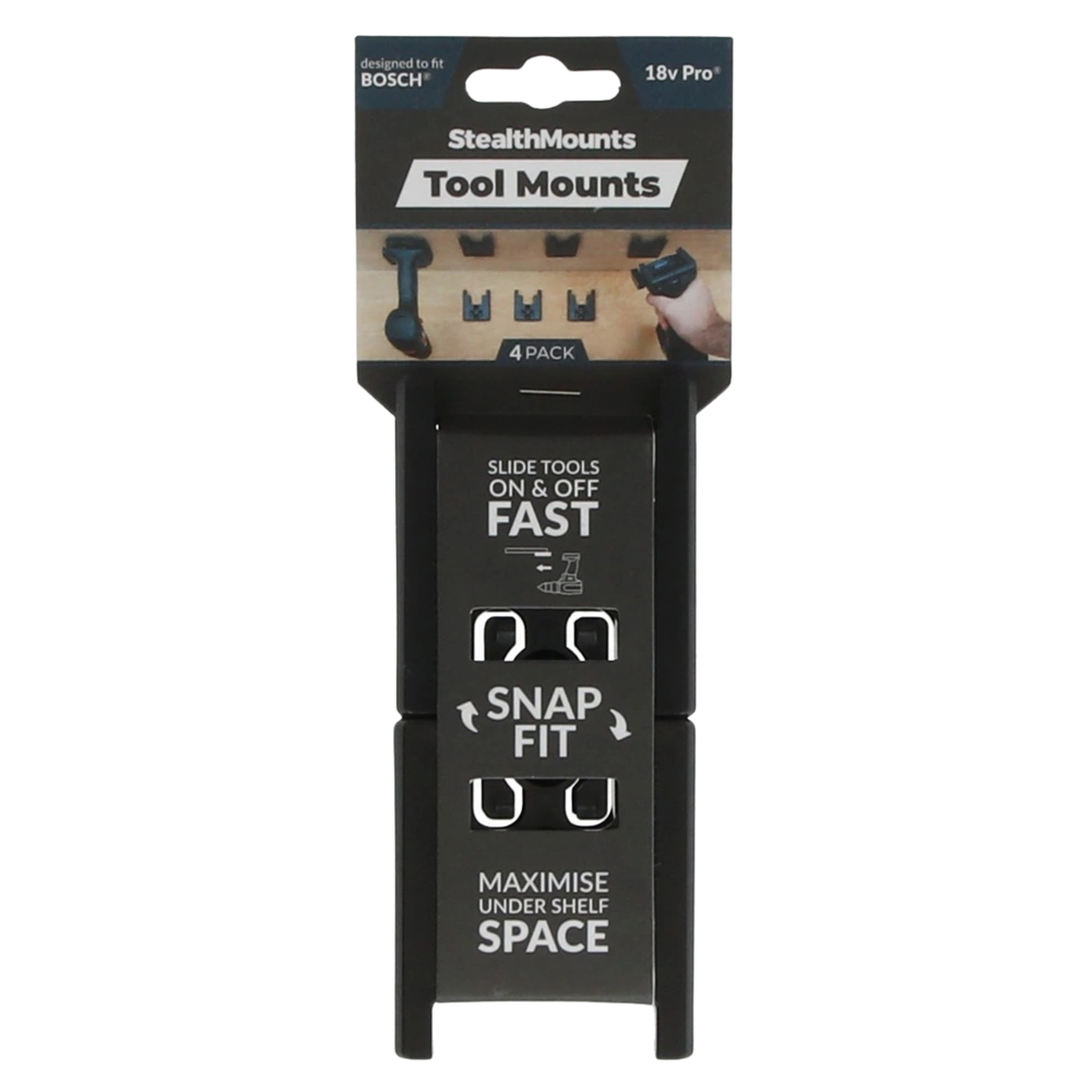 All product informationTool mount made of strong ABS plastic for the safe storage of cordless Bosch power tools. The holders can be mounted in any distance from each other, and they ensure clear organisation in workshops, tool trailers or working vehicles. The cordless tools are pushed into the mount until they snap in. For removal, they can simply be pulled out. By using the mounts, the tools are stowed in a very space-saving way and always ready to hand.