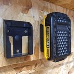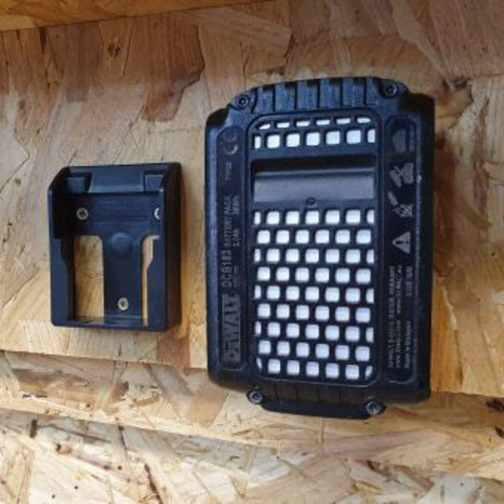 Battery mount made of strong ABS plastic for the safe storage of Dewalt batteries. The holders can be mounted in any position and distance from one another, and they provide for clear organisation in workshops, tool trailers or work vehicles...