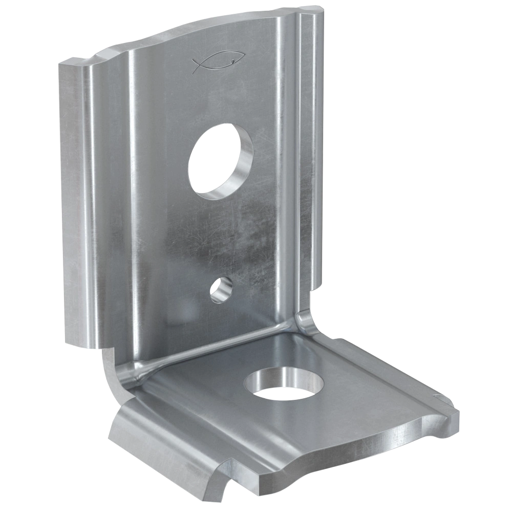 All product informationMounting bracket made of galvanised zinc for the connection of FLS mounting channels with each other or to the substrate. The special retaining lugs allow for the custom-fit insertion lengthwise and crosswise to the channel profile. The standard perforation enables the exact connection with FSM Clix-P sliding nut and screw.