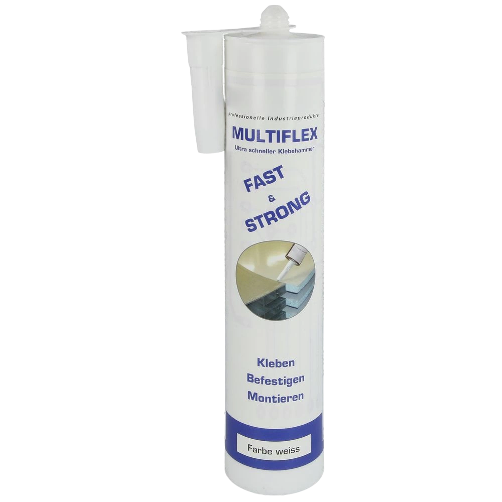 All product informationMultiflex Fast & Strong is a very viscous 1-component MS polymer glue and sealing product with extremely high initial adhesive force. It allows for fast and reliable bonding on almost all surfaces. For assembly or repairs, it can be applied both indoors and outdoors. After curing, Multiflex is permanently flexible, ageing-resistant, colourfast, odourless and weather-resistant.