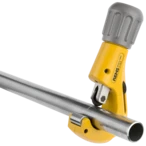 All product informationHigh-quality pipe cutter for professional cutting of pipes made of copper, aluminium, brass as well as thin-walled stainless steel and steel. The needle-bearing mounted cutter wheel and the hardened back pressure rollers mounted in needle bearings provide for exact guidance and particularly easy cutting. The broad and precise cutter wheel bearing on the hardened, non-rotating wheel shaft guarantees a right angle cut. The integrated pipe-deburring device is pivoted and adapts to the workpiece edge to be deburred. The robust tool is suitable for heavy-duty work thanks to the high quality of the materials used and is also extremely durable.