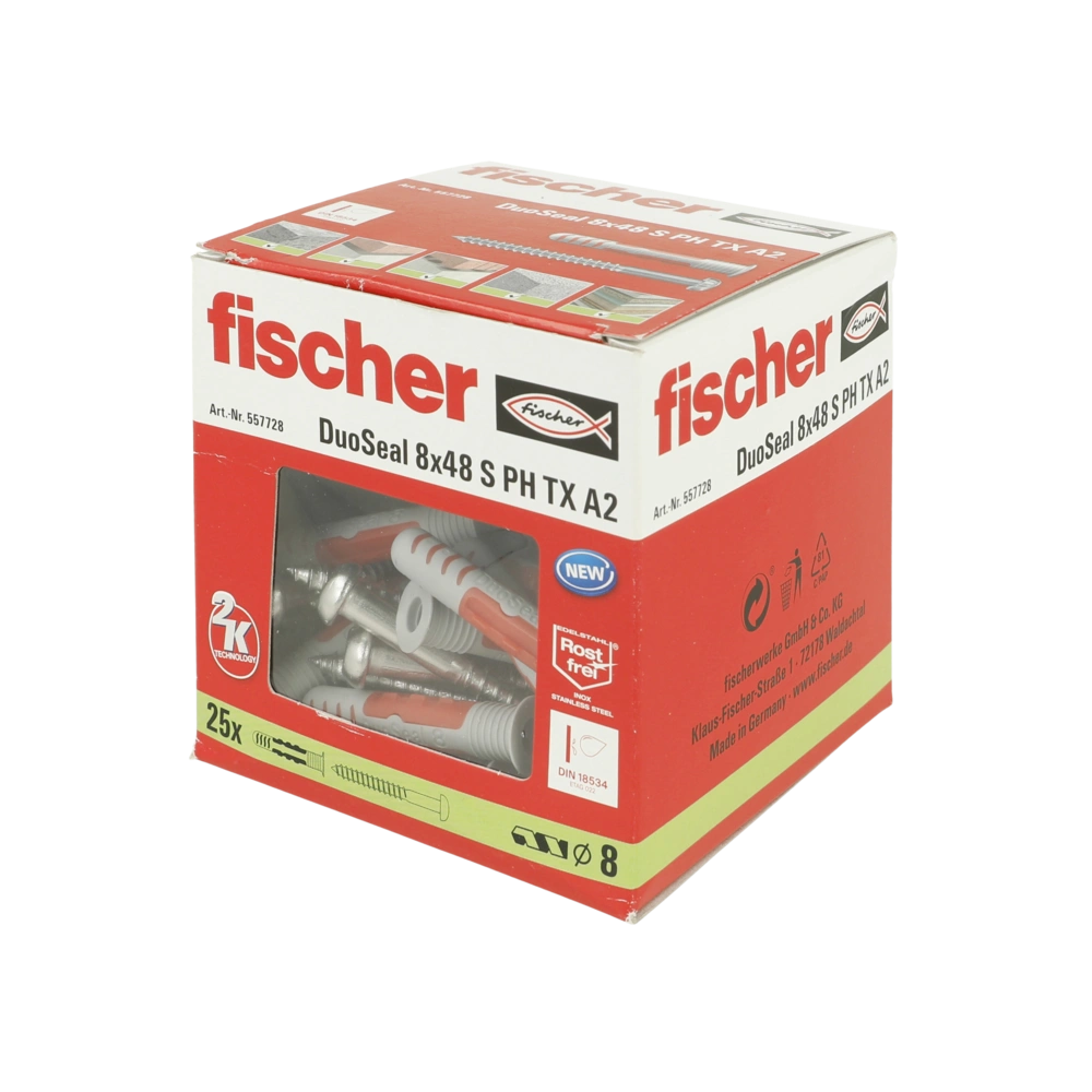 All product information Scope of deliveryNylon wall plug for sealing the drill hole in wet areas completely without needing any silicone at all. The red component provides for a secure hold and high load values. The soft, grey component completely seals the drill hole without additional sealing compound. Grooves in the anchor shaft compensate for uneveness in the drill hole and ensure an even more effective sealing.