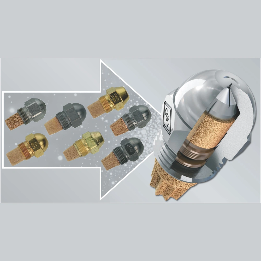 Due to decades of experience with oil nozzles of all kinds, and the large number of different burner makes on the spare-parts market, OEG has developed a special nozzle, suitable for universal application in the spare-parts market and allowing an optimum combustion.