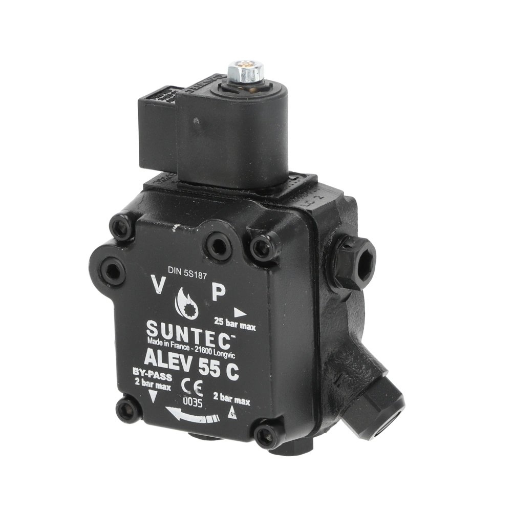 Internal gear pump with solenoid valve and integrated pressure relief valve in the nozzle line for light and extra light heating oil. The pump can be used in one- or two-pipe operations.