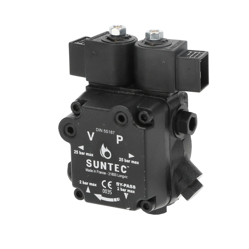 All product informationInternal gear pump suitable for light and extra-light heating oil in 2-stage operation. The pump is provided with two blocking solenoid valves with inline cut-off function, one for each nozzle outlet.