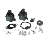 Case with 2 oil burner pumps for universal replacement of burner pumps in a one- or two-pipe system. The pumps are equipped with a solenoid valve and can provide the nozzle outlet on the left or on the right due to a plug...