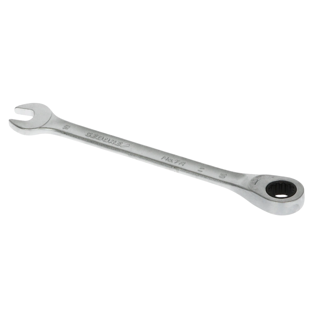 All product informationOpen-end spanner with ring ratchet. A high torque transfer and the flat pattern provide lots of application options.