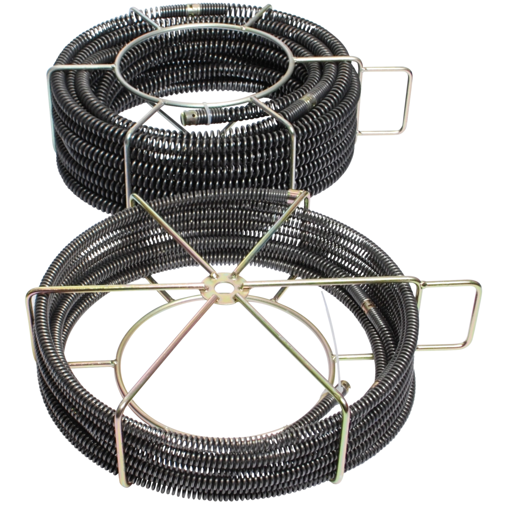 water and dirt. The machine ensures effective, simple and fast working by high speed, especially for effective milling and chain spinning. The highly flexible, specially hardened pipe cleaning spirals make progress easy, even in narrow pipe bends. Choice of three types of spirals:
