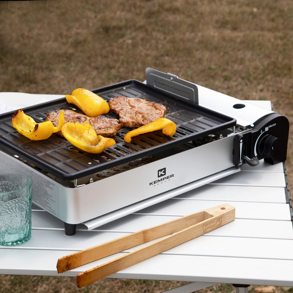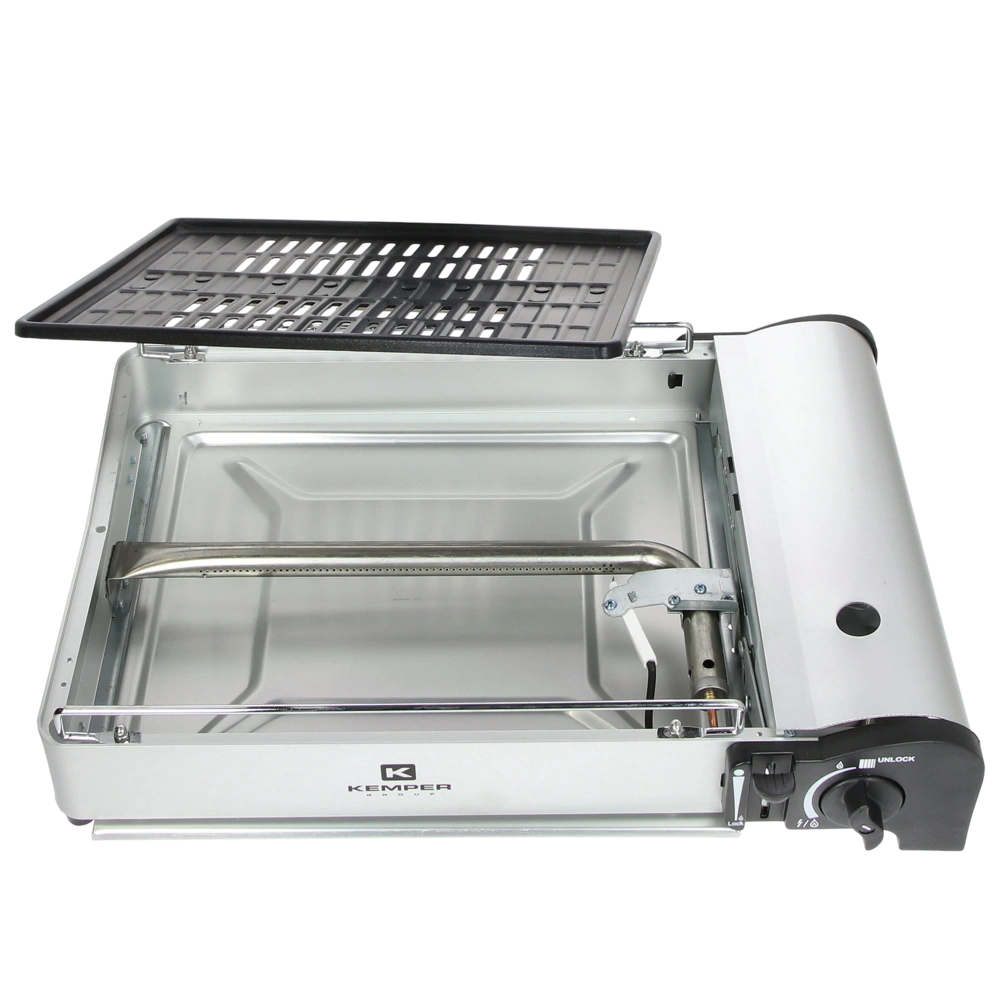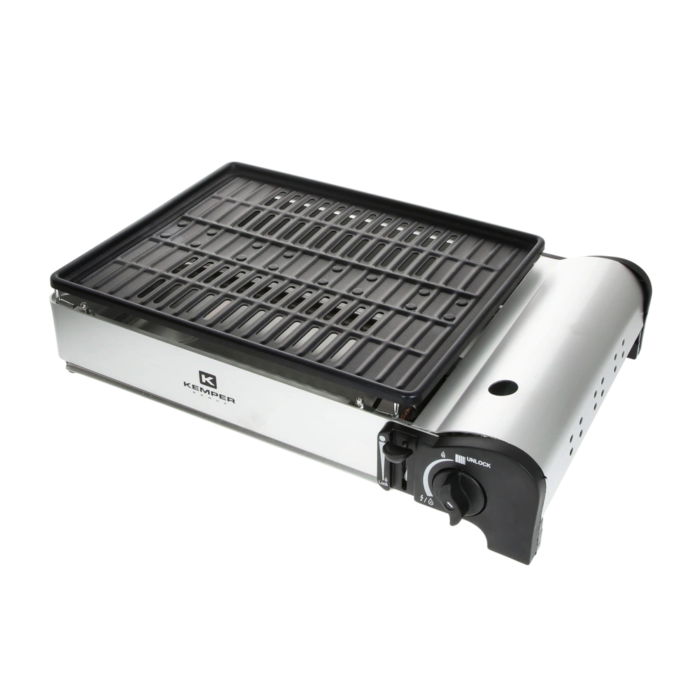 Powerful outdoor grill made of stainless steel with piezo ignition for gas pressure cartridges. The aluminium grid with non-stick coating and the grease tray can be removed for cleaning. The grill is...