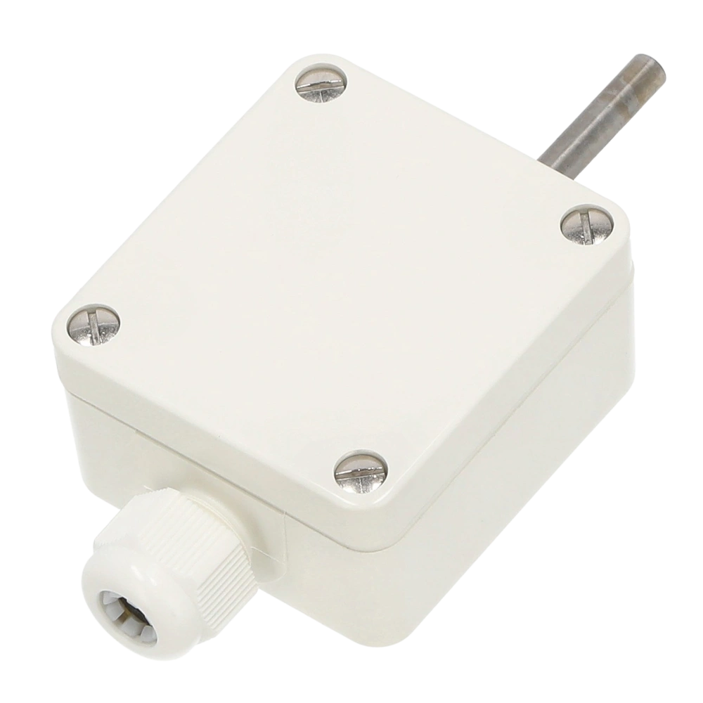 This temperature sensor measures the outdoor temperature via a projecting sensing element and provides the controller with a passive PT1000 signal. The external sensor sleeve enables temperature changes to be detected quickly so that weather-compensated control strategies can be implemented precisely. This supports stable operating conditions in temperature-controlled systems, including in damp rooms, cold stores, greenhouses and industrial environments. Where the sensor is exposed to direct sunlight, a suitable sunshade must be used to ensure that the measured value accurately reflects the actual weather conditions.