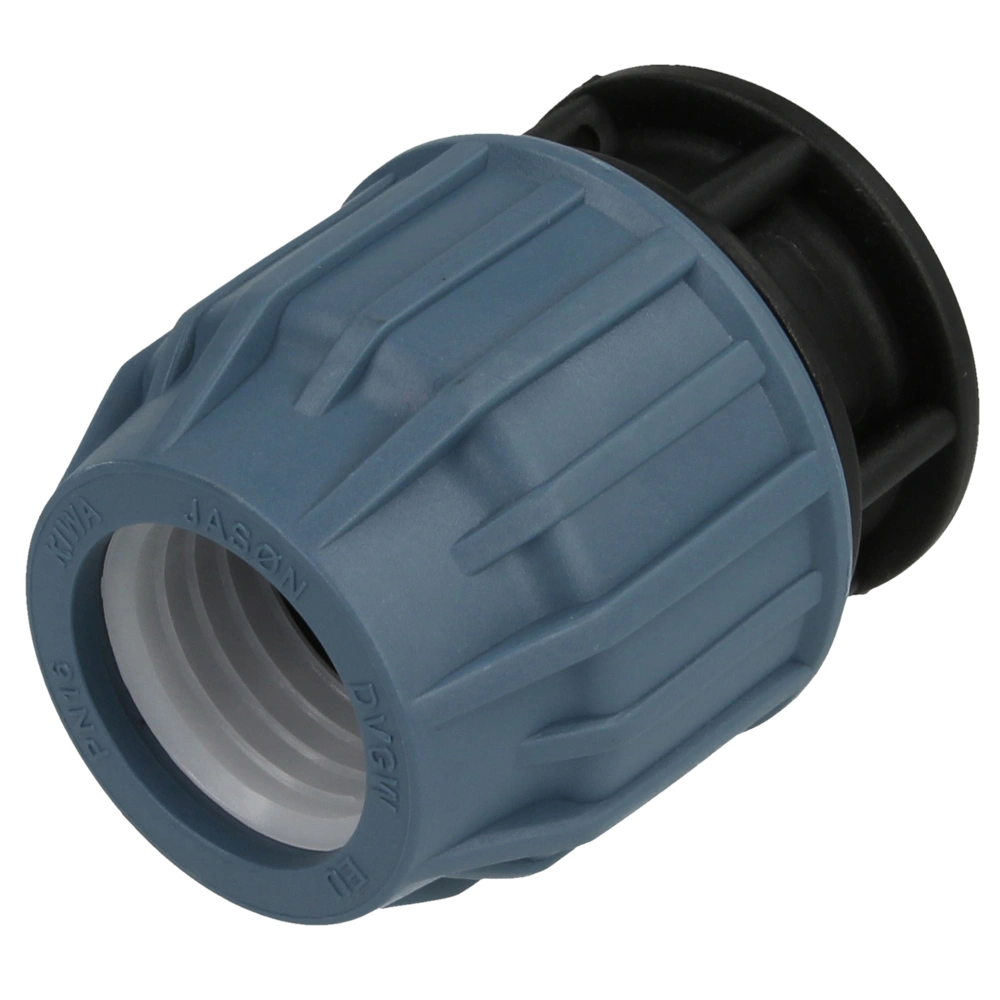 PE end cap compression fitting for PE pipes.